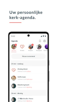 View the calendar for your entire community, but also for specific groups. Thanks to the smart group structure, each user has his own unique church calendar. Then link it to your own personal calendar and don't miss a thing!