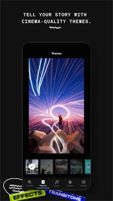 Find a theme that tells your story with cinematic transitions, filters, and effects.
